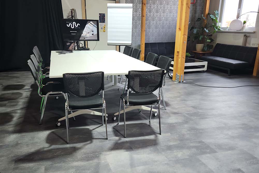 A greenroom (5.30 m x 7.10 m / h 4.60 m) is currently being built for 180-degree shots plus a dressing room and control room Find out more...