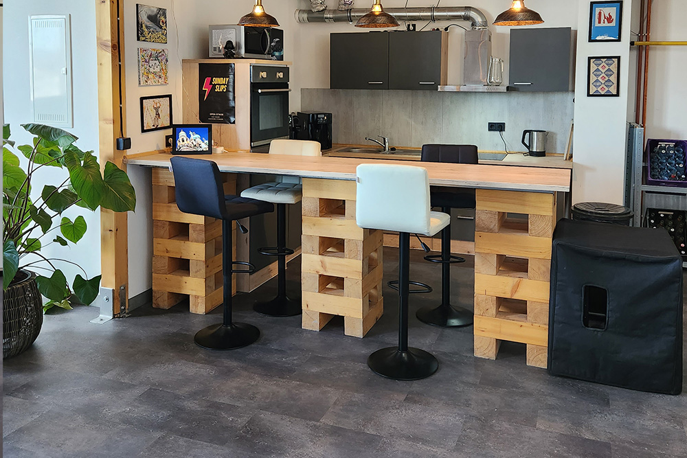 Auf Wunsch kann zusätzlich ein stilvolles Loft gebucht werden – ideal als Aufenthaltsraum, für Pausen, Meetings oder Catering. Bei uns bekommst du ein stimmiges Produktionsumfeld mit viel Raum für Kreativität und Konzentration.